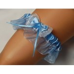 Dámský podvazek, který je vyrobený ze dvojité vrstvy světle modrého šifonu. Podvazek je ozdobený světle modrou páskou a světle modrou mašličkou. Gumička je podšitá silikonem.