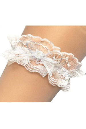 Elegantní saténový dámský podvazek s bílou organzou. Podvazek je ozdobený mašličkou a květinkou z perliček.