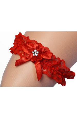 Svůdný podvazek z jemné krajky, který je ozdobený saténovou mašličkou s květinkou.Složení: 50 % nylon, 47 % polyamid, 3 % lycra.