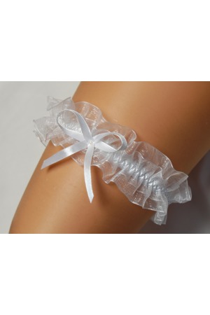 Svatební podvazek v bílé barvě. Složení: 50% nylon, 47% polyamid, 3% lycra