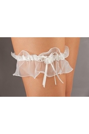Široký šifónový podvazek v barvě šampaň s mašličkou a šifónovou růžičkou. Materiál: 100% Polyester.