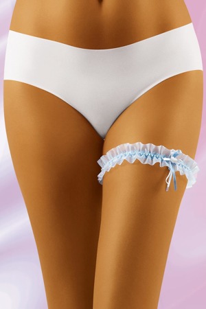 Jemná podvazek, který pěkně ozdobí stehno. Díky elastické gumce dobře drží na svém místě. Jemná krajka přitahuje pozornost. Ozdobený je malinkým kvítkem.
