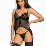 Rafinovaný podvazkový pás s kalhotkami Fifii Roza , který je ušitý z jemné krajky, kterou zdobí krásné mašličky. Pás má regulovatelné šňůrky, které jsou na konci zakončené sametovou stuhou. Ideální do kombinace s podprsenkou Fifii Roza, kalhotkami, nebo tangy.